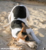 The Jack Russell is a happy, bold, energetic dog; they are extremely loyal, intelligent and assertive. Their greatest attribute is their working ability, closely followed by their excellent qualities as a companion. A Jack Russell can be equally contented bolting a fox or chasing a toy in your living room, or equally adept at killing a sock in the living room or a rat in your barn. Their funny antics will continually amuse you, their intelligence seems to know no bounds and their assertive nature and boundless energy can at times be overwhelming. The Jack Russell can make a terrific family pet, and gets along well with well behaved children. One of the Jack Russell's most surprising qualities is a kind and gentle nature. He is usually friendly with small children, provided the child understands how to properly handle the terrier. Having the natural assertive terrier characteristics, however, the Jack Russell will not put up with even unintended abusive nature from a child. This should be carefully considered, particularly with children under the age of six.